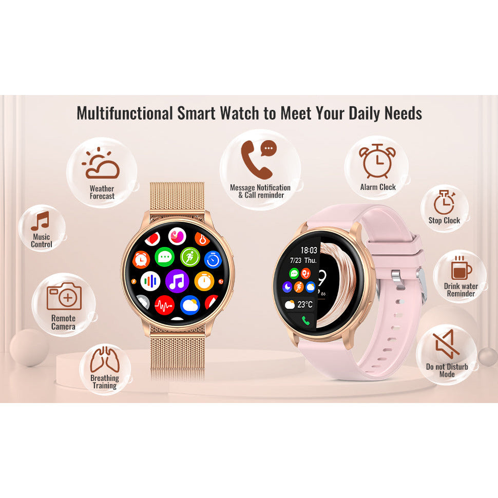 Découvrez Harper - Montre Connectée Multifonctions en Or Rose. La montre Harper allie élégance et technologie pour offrir une expérience connectée ultime. Avec sa finition en or rose, cette montre ajoute une touche de luxe à votre poignet tout en vous offrant une multitude de fonctionnalités pratiques. Que ce soit pour suivre vos activités physiques, surveiller votre santé ou recevoir des notifications en temps réel, la Harper est le compagnon idéal pour rester connecté avec style. Parfaite pour toutes les occasions, elle combine beauté et performance.