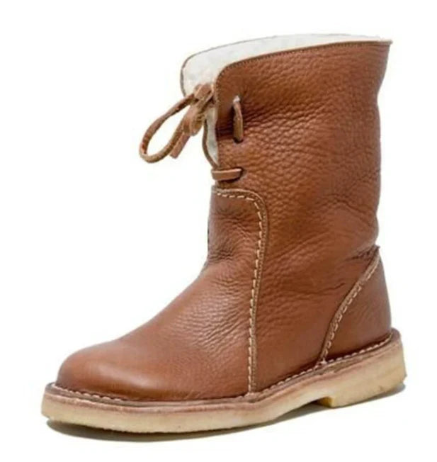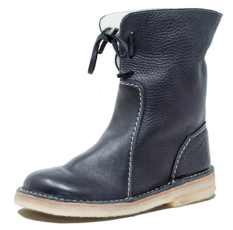 Bottes d’Hiver pour Femme Mi-Mollet Chaudes à Enfiler Plates | Bottes à Lacets