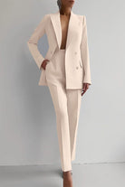 • Silhouette structurée : Blazer croisé et pantalon taille haute pour un look flatteur.