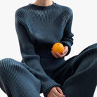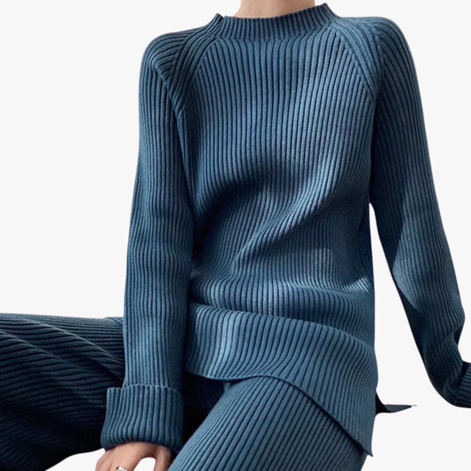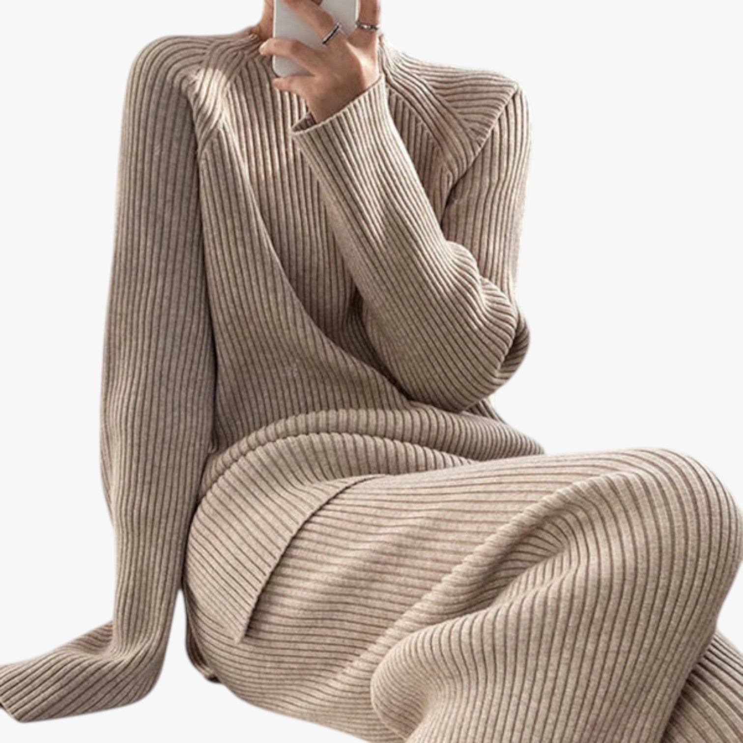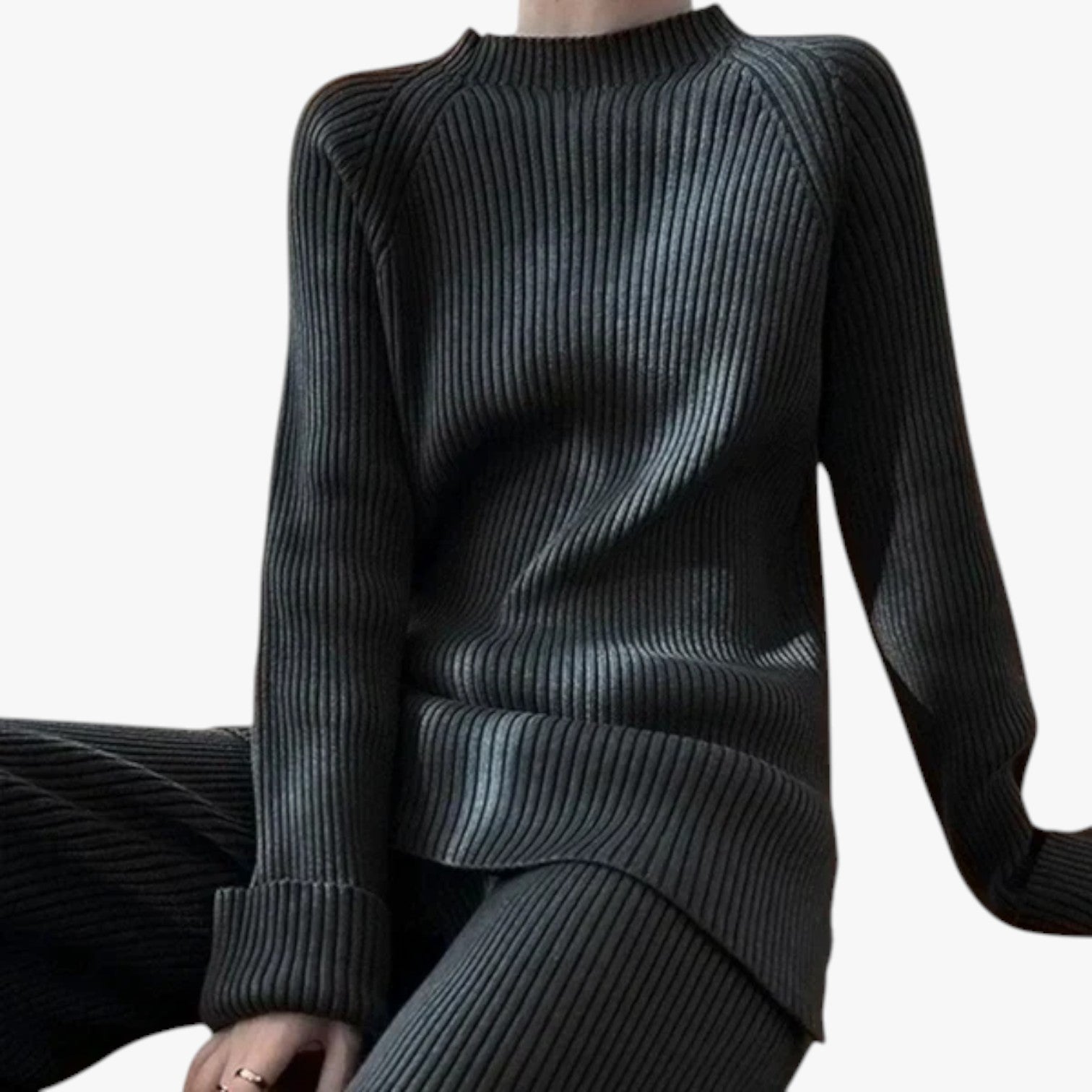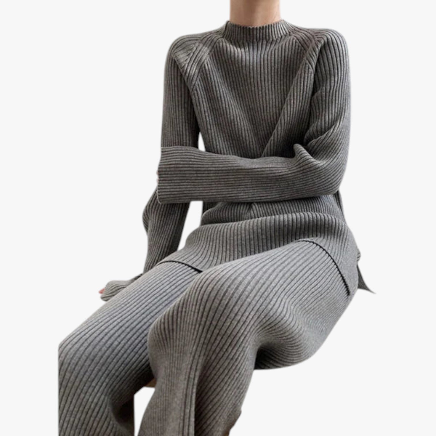 Tivana - Ensemble Décontracté en Maille Côtelée avec Haut et Pantalon pour Femme. L’ensemble Tivana réinvente le confort avec élégance grâce à sa maille côtelée douce et son design minimaliste. Composé d’un haut décontracté et d’un pantalon assorti, il est parfait pour les journées relaxantes à la maison ou les sorties casual. Chic et confortable, cet ensemble s’adapte facilement à votre style de vie tout en vous offrant une allure soignée.