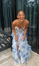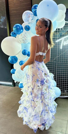 Une élégance naturelle, sublimée par un motif floral romantique et des volants fluides pour une silhouette gracieuse.