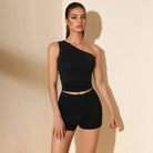 Adoptez une allure élégante et tendance avec l’ensemble Adeline One-Shoulder. Composé d’un top ajusté au design asymétrique orné de délicats strass pour une touche de glamour, cet ensemble est à la fois sophistiqué et moderne. Le short assorti offre un ajustement confortable et flatteur, idéal pour une soirée ou un look chic et décontracté.