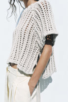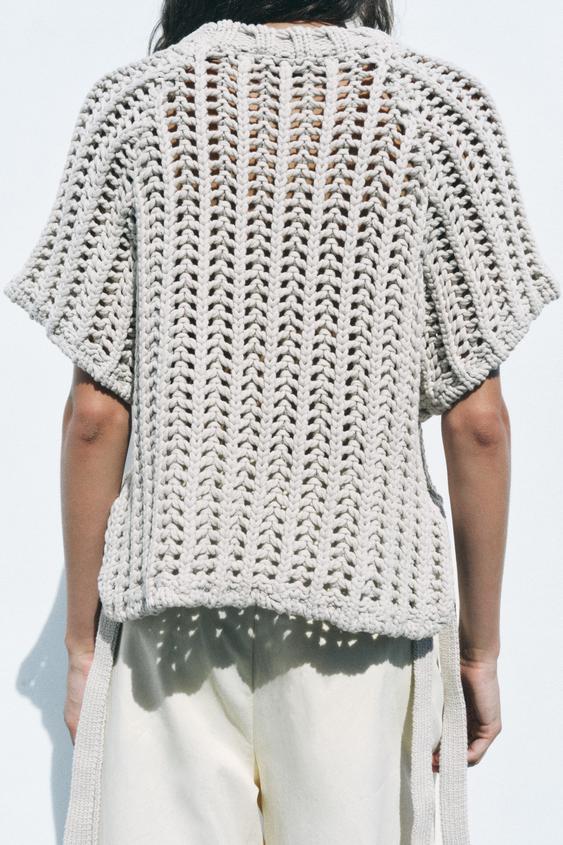 Doux et élégant, le pull Emma allie confort et touche raffinée. Son design en crochet et ses délicats détails noués apportent une allure à la fois ludique et sophistiquée, parfaite pour toutes les occasions.