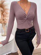 Lauren - Top ajusté en maille côtelée, décolleté plongeant et effet torsadé