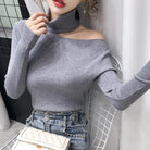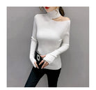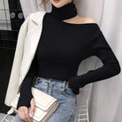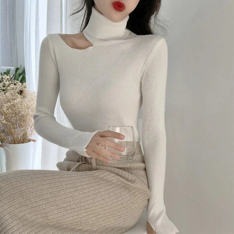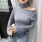 Lena - Pull moulant asymétrique à col montant et épaule dénudée