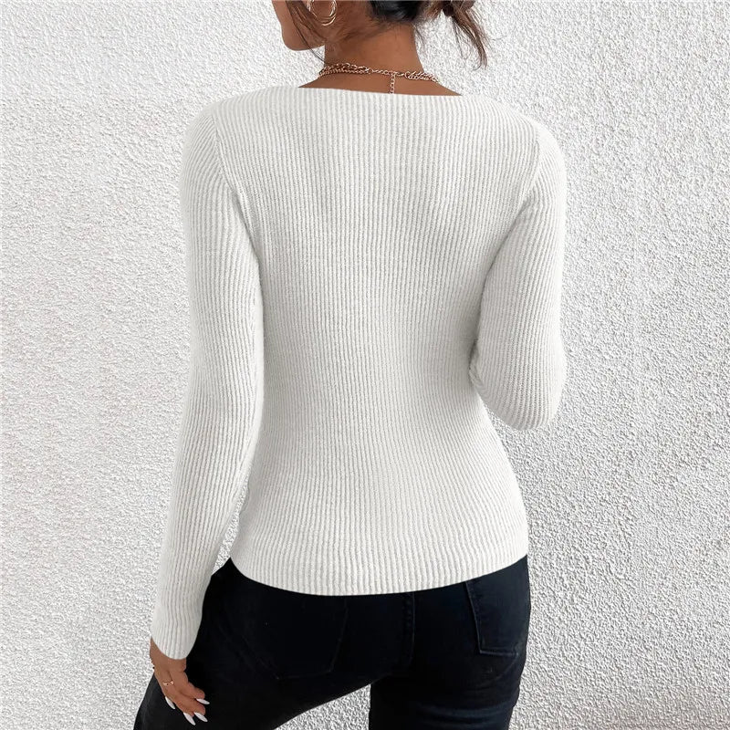Noah - Pull moulant en maille côtelée, col en V élégant et confortable