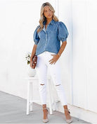 Veloce - Chemise en jean Elégante à manches Bouffantes