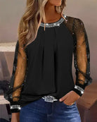 Vespera – Blouse chic à manches Transparentes et strass Scintillants