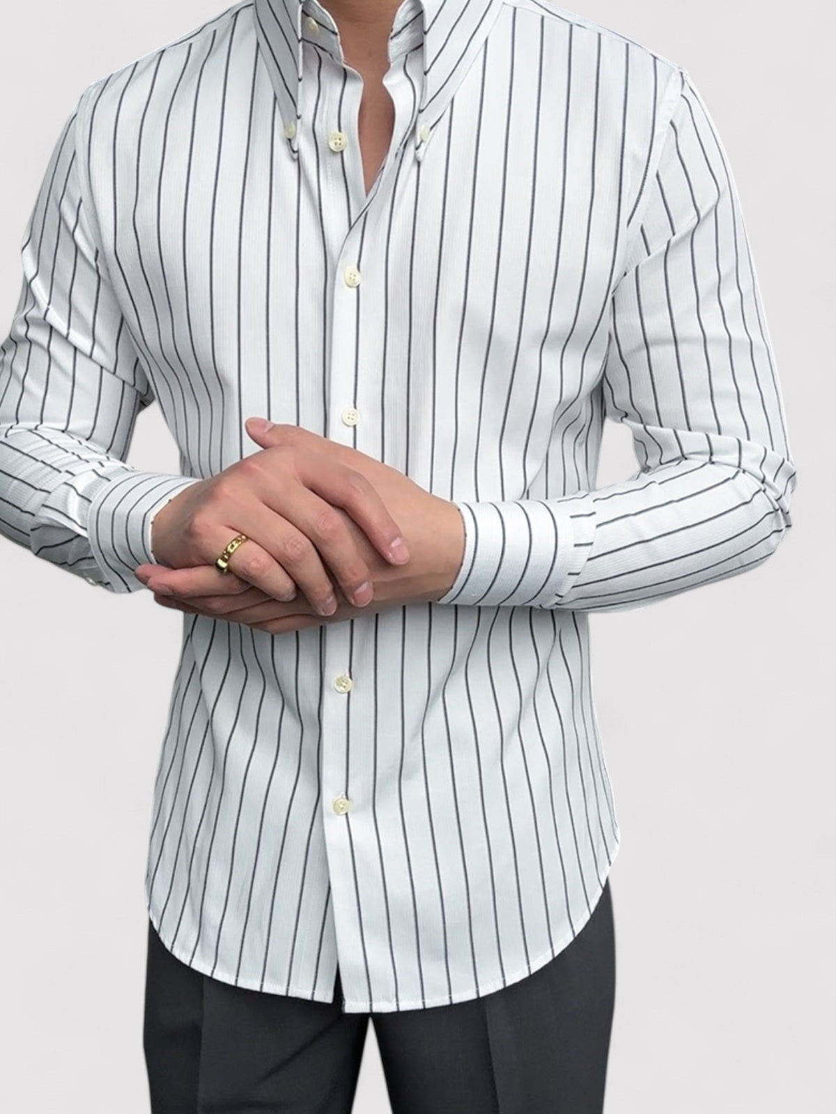Moderne et élégante, Brent se distingue par son motif à rayures raffinées et son col boutonné. Parfaite pour un look à la fois professionnel et décontracté, cette chemise assure confort et style tout au long de la journée.