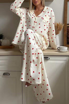 Amour - Ensemble pyjama doux à imprimé cœurs rouges