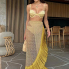 Elisa - Ensemble de plage raffiné avec jupe en dentelle et franges élégantes
