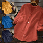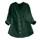Léa - Chemise Décontractée en Lin avec Col V et Manches Longues pour Femme