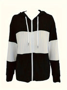 Sweat à capuche zippé en maille côtelée rayée pour femme | Manches longues
