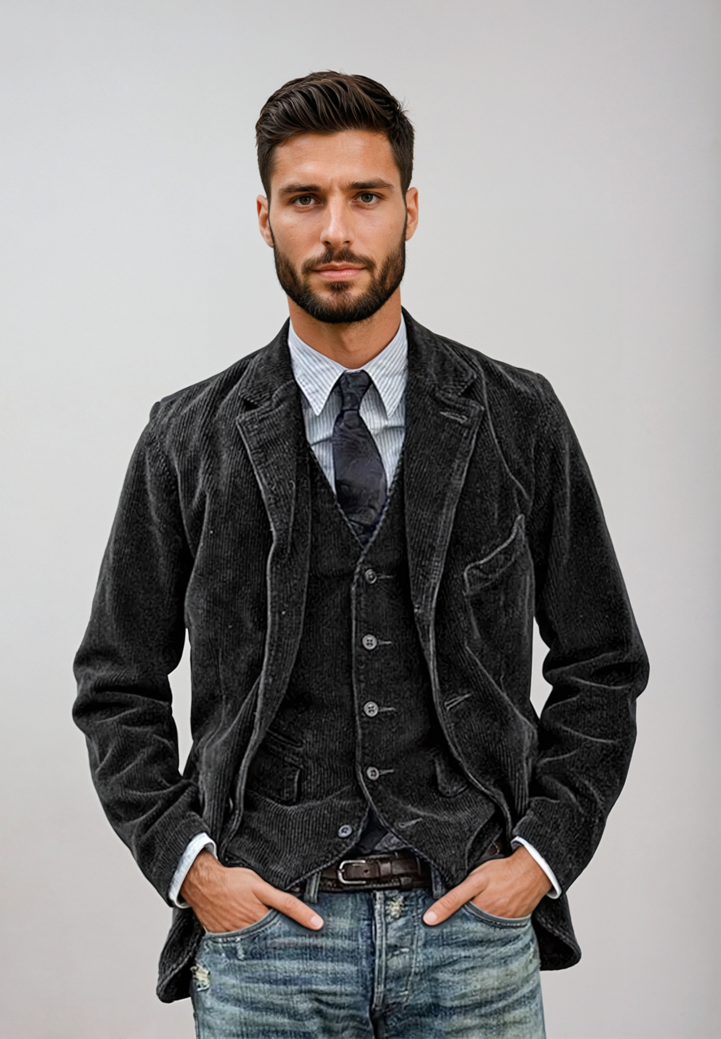 Luca - Blazer en Velours Côtelé pour un Style Vintage. Le blazer Luca incarne l'élégance rétro avec une touche de modernité. Fabriqué en velours côtelé de qualité, ce blazer offre un style vintage tout en restant polyvalent et raffiné. Parfait pour les occasions spéciales ou pour ajouter une touche chic à une tenue décontractée, il est une pièce incontournable pour les hommes en quête d’originalité et de sophistication.