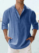 Lucas - Chemise Décontractée en Lin avec Col V et Manches Longues pour Homme. La chemise Lucas est l’alliance parfaite entre élégance naturelle et confort. Confectionnée en lin léger et respirant, elle offre une sensation de fraîcheur idéale pour toutes les saisons. Son col V raffiné et sa coupe fluide apportent une touche décontractée tout en restant sophistiquée. Polyvalente et intemporelle, cette chemise est parfaite pour un look à la fois chic et détendu.