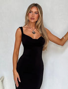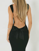 Nefeli – Robe longue en satin noir avec nœud décoratif