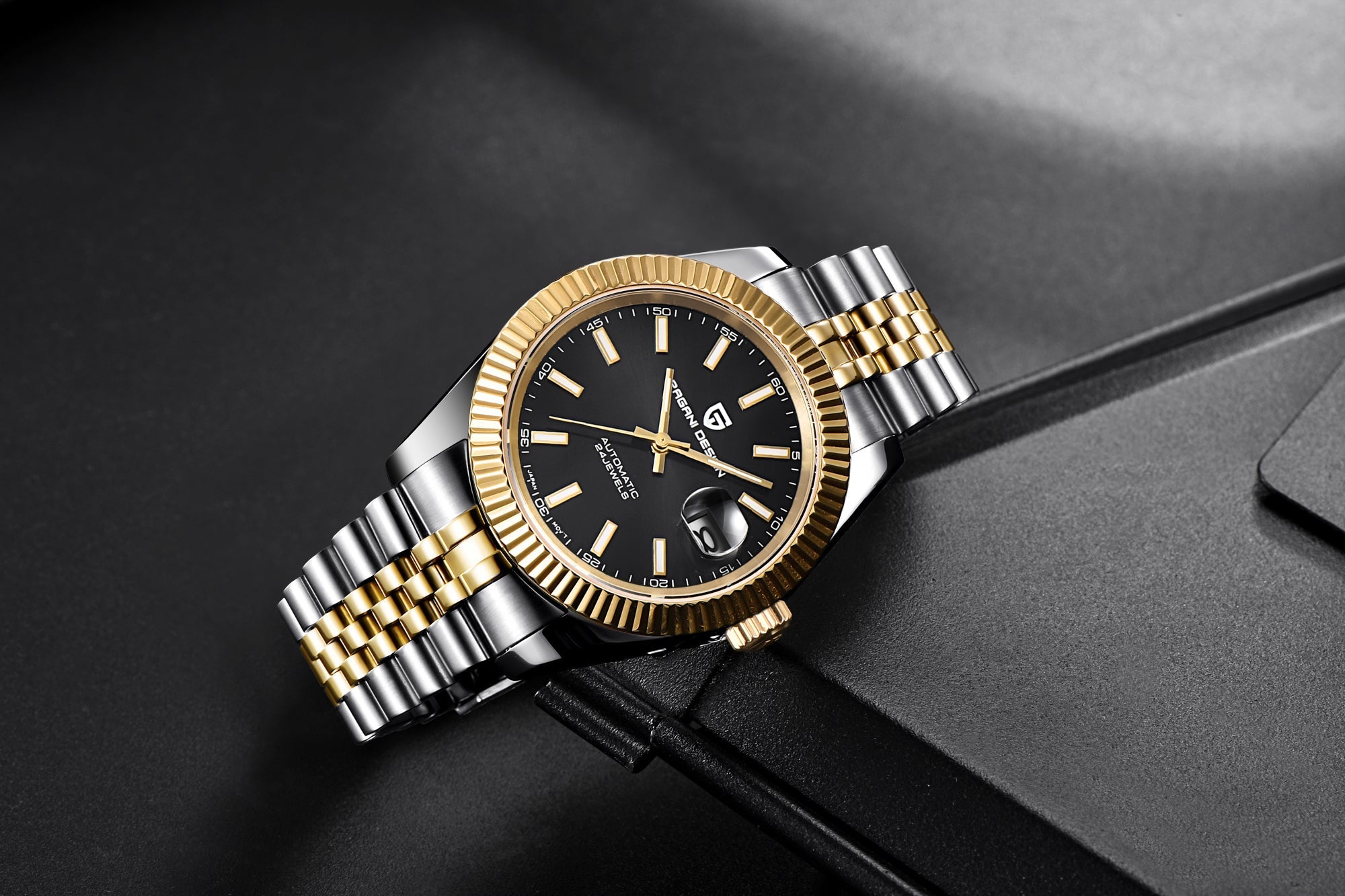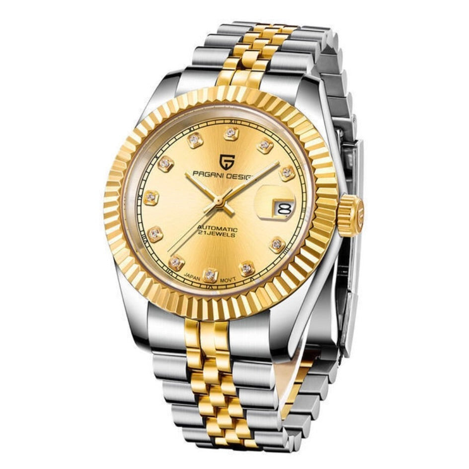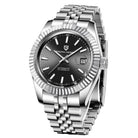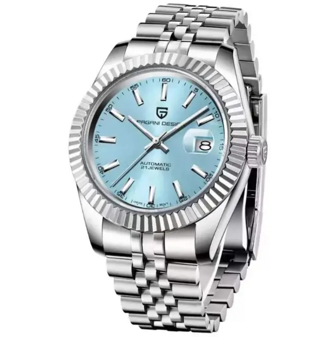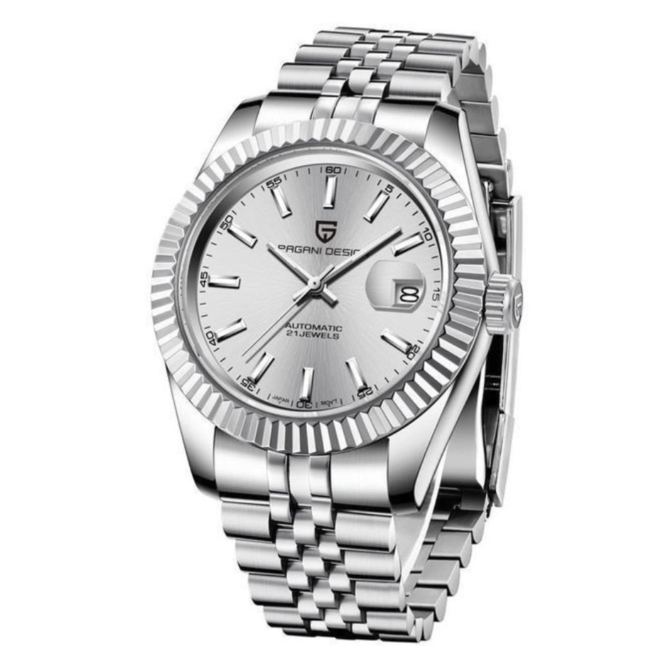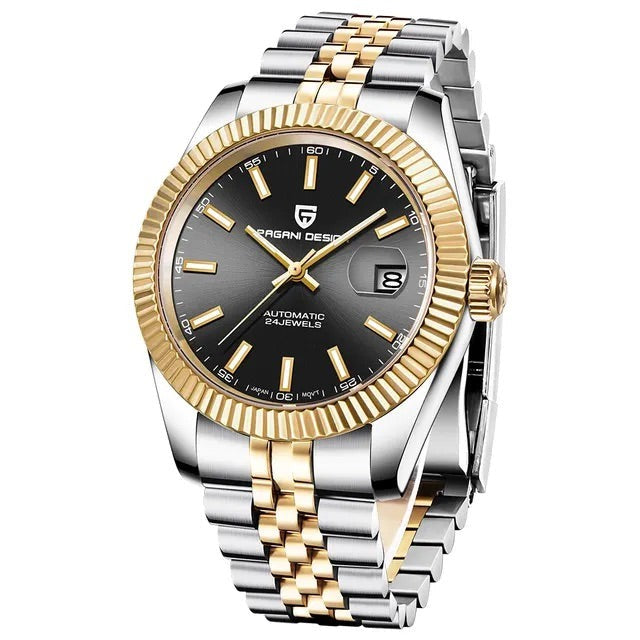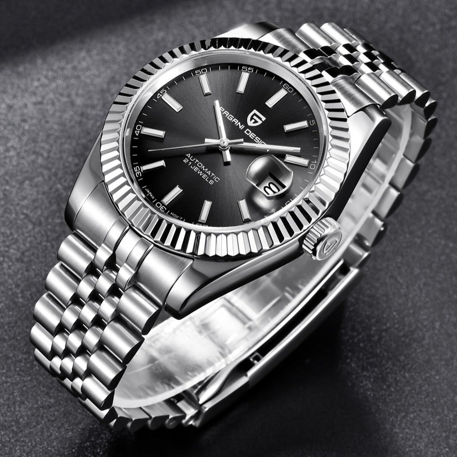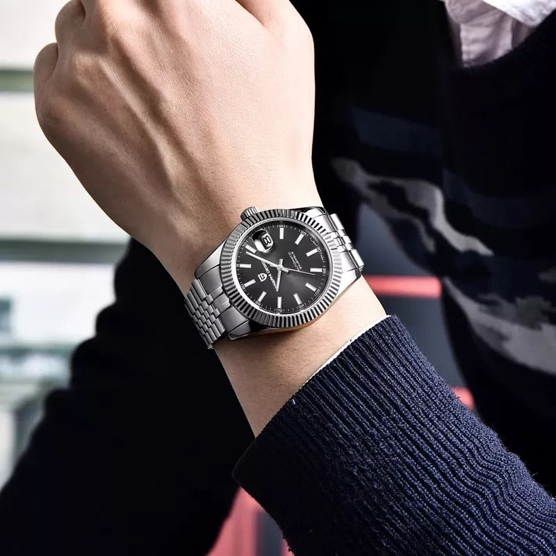 Roy - Montre Automatique pour Homme avec Mécanisme à 24 Rubis. La montre automatique Roy incarne l'élégance et la précision pour les amateurs d'horlogerie. Dotée d’un mécanisme à 24 rubis, elle garantit un mouvement fluide et une durabilité exceptionnelle. Son design sophistiqué, associé à des finitions de qualité, en fait un accessoire raffiné et intemporel, parfait pour compléter un look professionnel ou habillé. Avec la montre Roy, vous portez bien plus qu’un simple garde-temps – un chef-d’œuvre de mécanique et d’élégance.