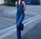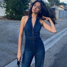 Amy – Combinaison en Denim ajustée avec et Coupe Evasée