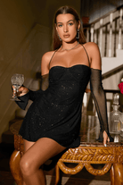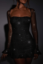 Bella - Mini Robe en maille Pailletée à manches Longues