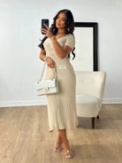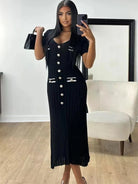 Élégante et flatteuse, la robe Camille épouse parfaitement les courbes grâce à sa coupe bodycon en maille. Son col V raffiné et son boutonnage sophistiqué ajoutent une touche de chic intemporel, idéale pour toutes les occasions.