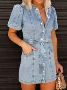 Darya – Robe en Jean Élégante à Manches Bouffantes et Boutonnée