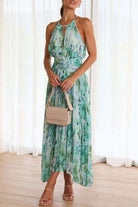 Dina - Robe mi-longue Plissée à encolure découpée et Fleurs