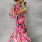 Evelyn - Robe longue Fluide à Imprimé Floral et Ceinture ajustable
