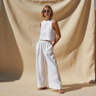 Aérien et tendance, Fenna allie confort et élégance avec son top court et son pantalon ample. Confectionné en lin léger, cet ensemble est idéal pour un look décontracté et raffiné en toute saison.