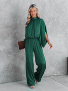 Gracelyn - Combinaison Émeraude Élégante à Manches Cape. La combinaison Gracelyn incarne le raffinement et l’audace. Avec sa teinte émeraude luxueuse et ses manches cape fluides, elle offre une allure sophistiquée qui ne manquera pas d'attirer les regards. Idéale pour des événements spéciaux, des soirées habillées ou des cocktails, cette pièce combine élégance intemporelle et modernité.