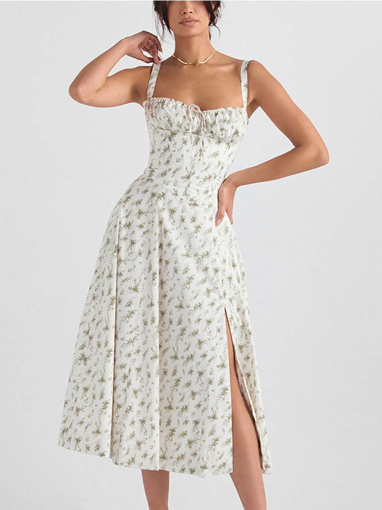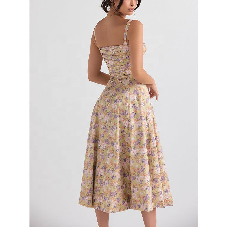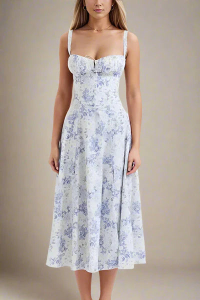 Jonita - Robe midi Romantique à Imprimé Floral et haut Corseté