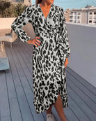 Leila – Robe à col en V avec imprimé léopard