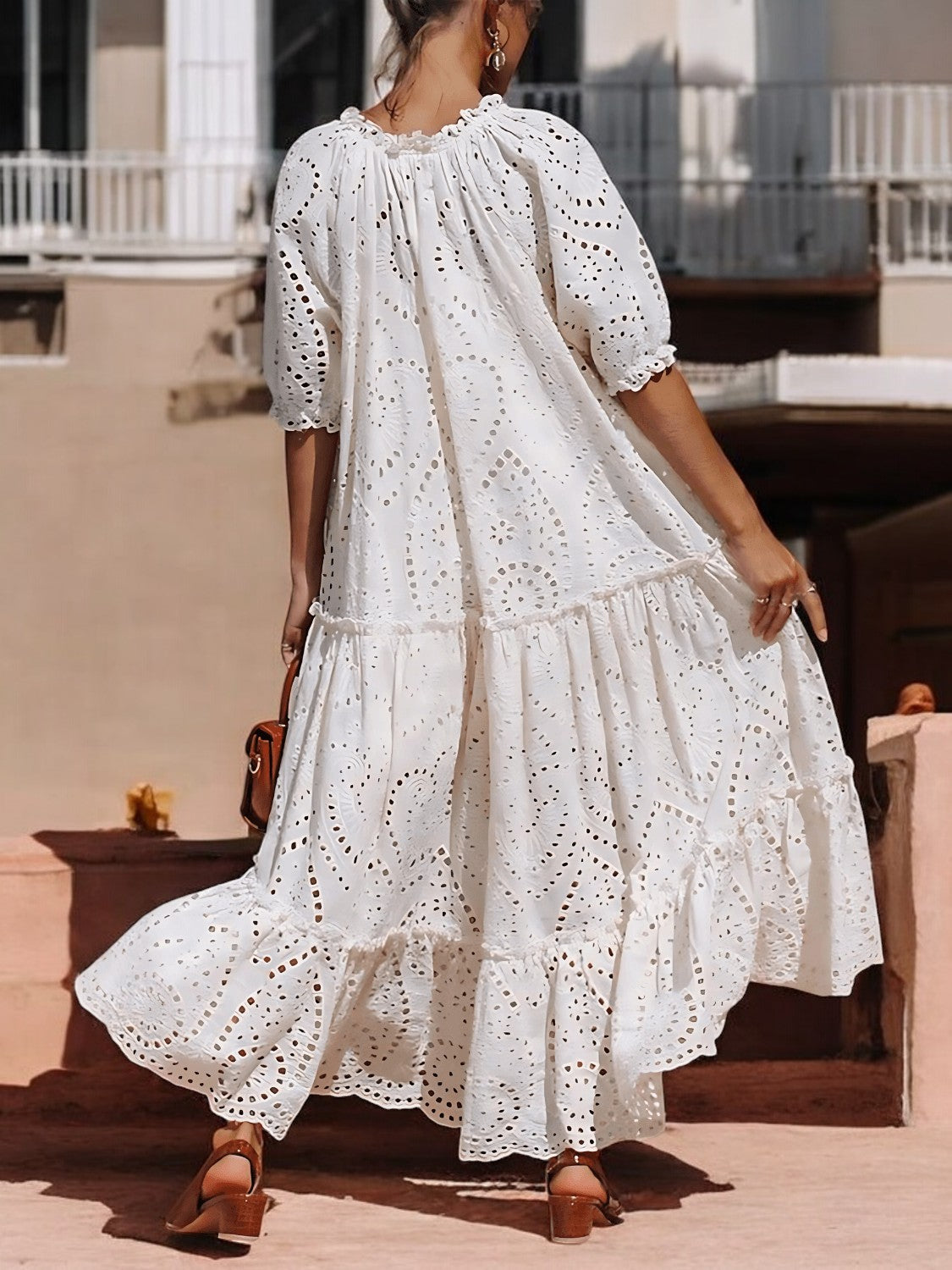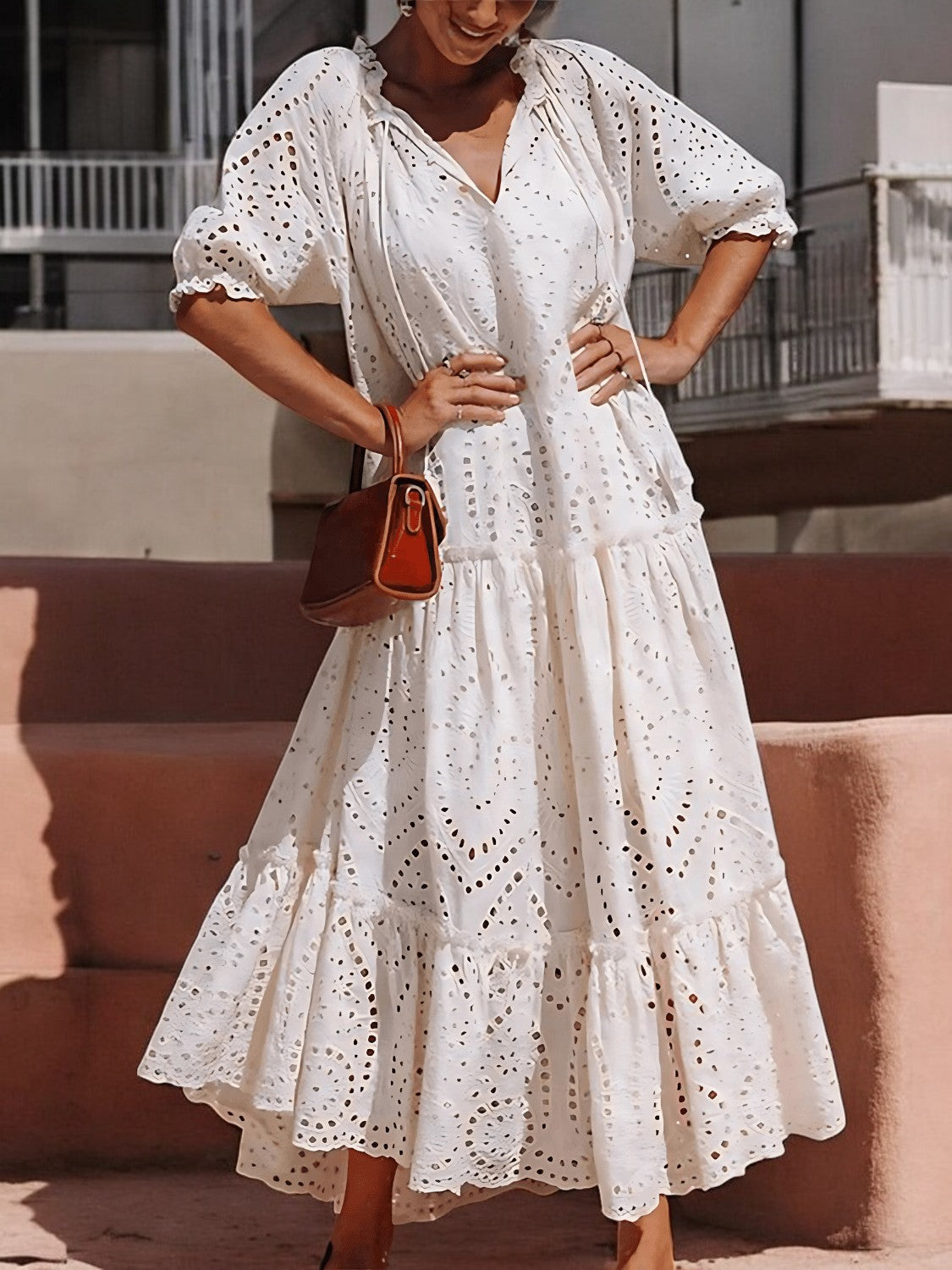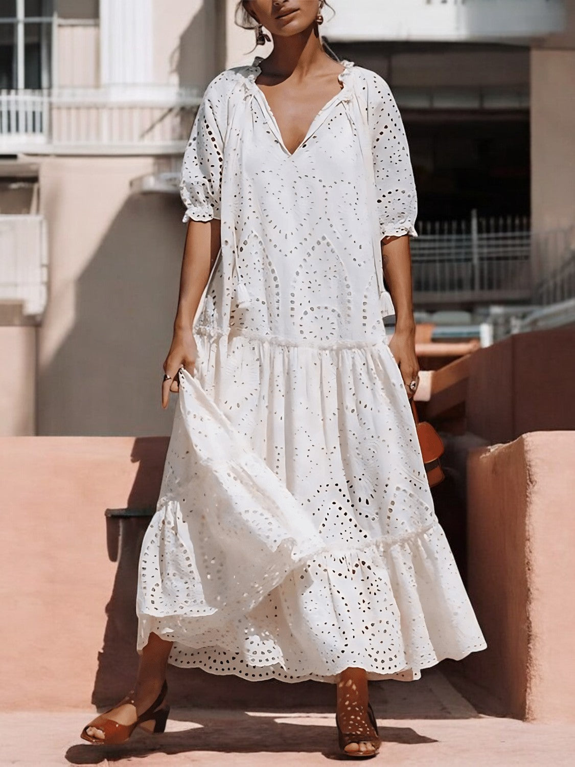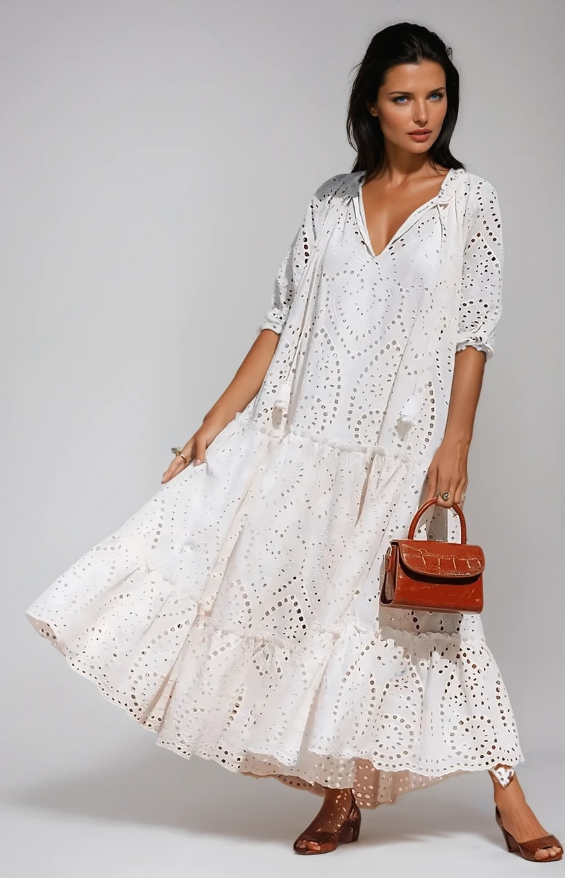 Nerissa – Robe d’Été Chic en Coton à Volants avec Nœud au Col