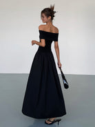 Rachel - Robe longue élégante, épaules dénudées et fluide