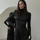 Selena – Robe moulante élégante à col roulé et fente
