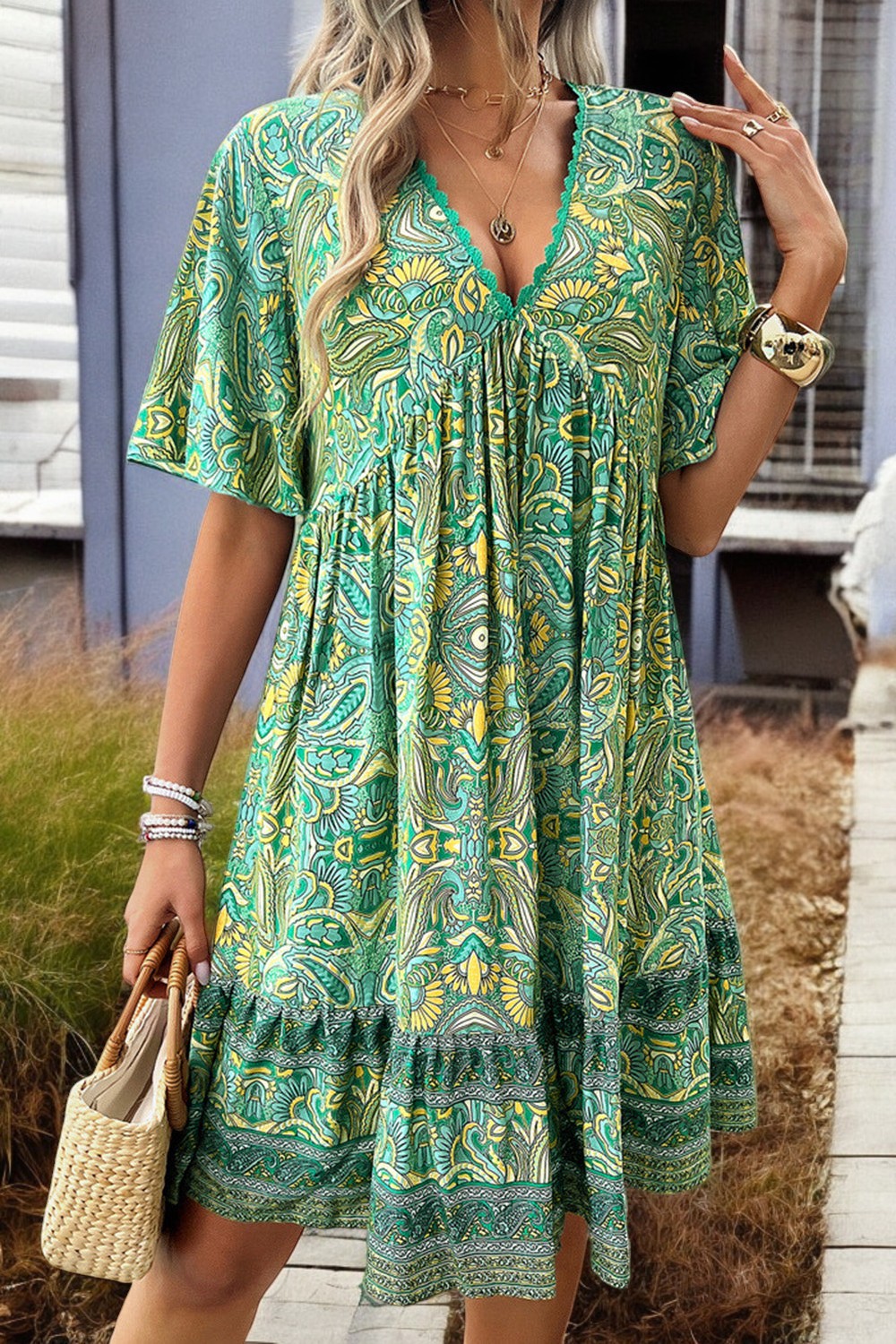 Solana – Robe Courte à Imprimé Floral et Col en V, Légère et Aérienne
