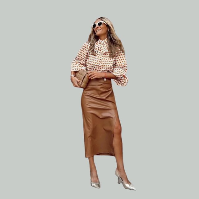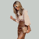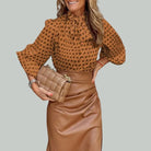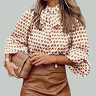 Camille - Blouse élégante à nœud, manches bouffantes et imprimé chic