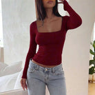 Elena - Top moulant à manches longues, col carré, chic et élégant