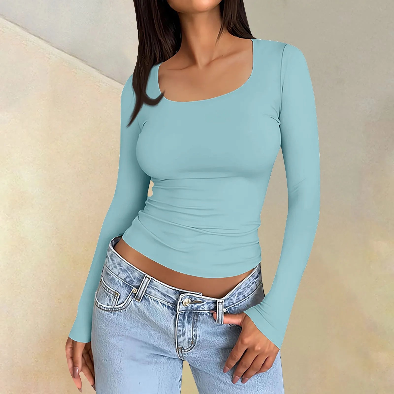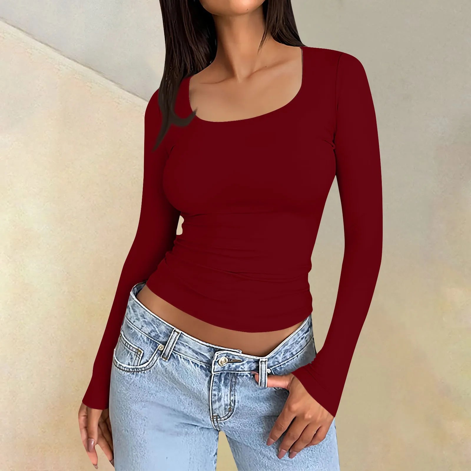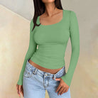 Isaiah - Top ajusté à manches longues, col carré élégant
