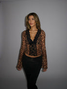 Séduisant et tendance, le Top Ivoire, Léopard Mesh associe un imprimé animalier ludique à d'élégants détails en dentelle. La maille transparente et les manches longues créent un look élégant et sûr de lui, parfait pour une soirée.