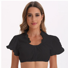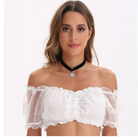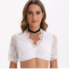 Janice - Blouse courte en dentelle, col V et manches transparentes