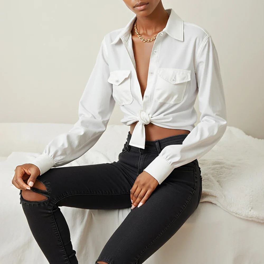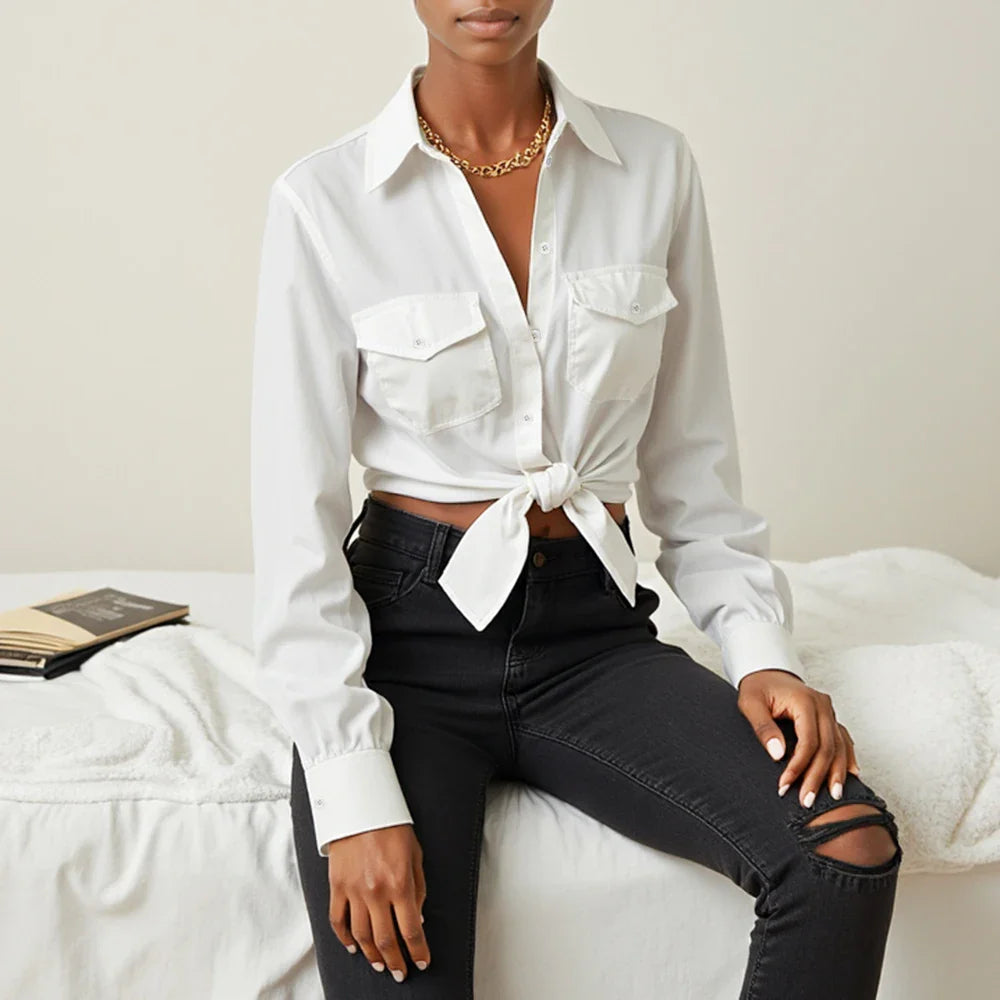 Jayden - Chemisier tendance à manches longues boutonnées avec poches poitrine