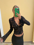 Jessica - Seductive Top à manches Longues en Dentelle avec col en V