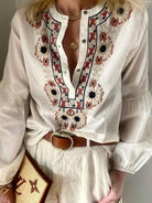 Lindsey - Blouse Bohème Chic en Coton avec Broderie Florale Ethnique