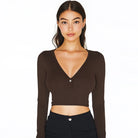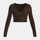 Mary – Haut crop à manches longues, col en V et détail bouton élégant
