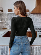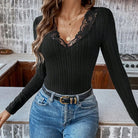 Mia - Top en maille côtelée, col en dentelle et manches longues élégantes