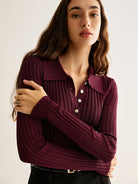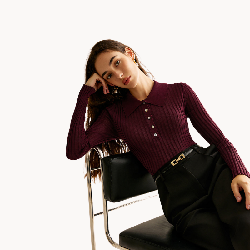 Milae – Pull côtelé ajusté avec col polo et boutons élégants