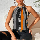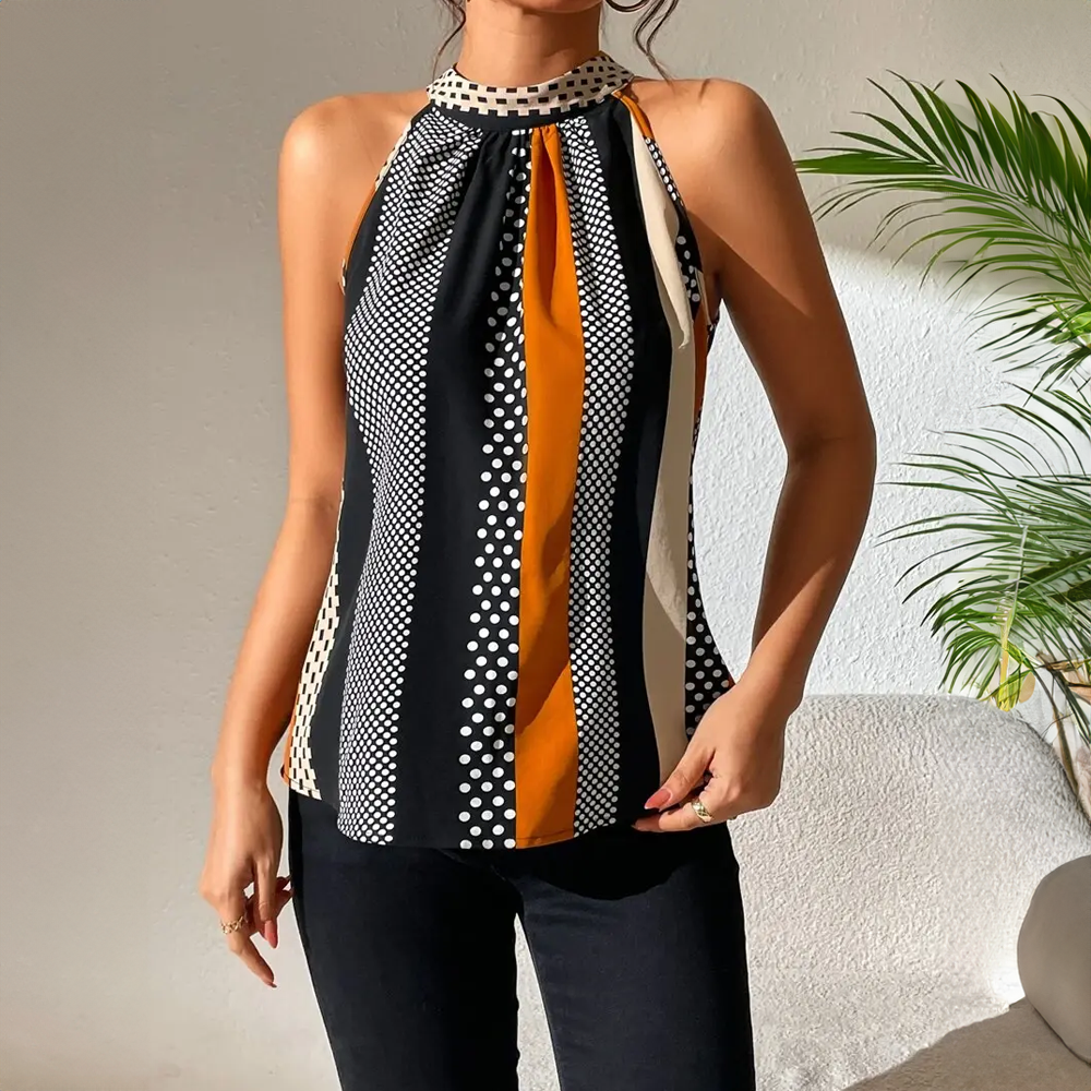 Nadine - Top dos nu fluide à imprimé graphique, chic et léger