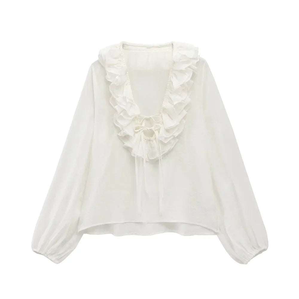Nina - Blouse Bohème à Volants avec Décolleté Plongeant
