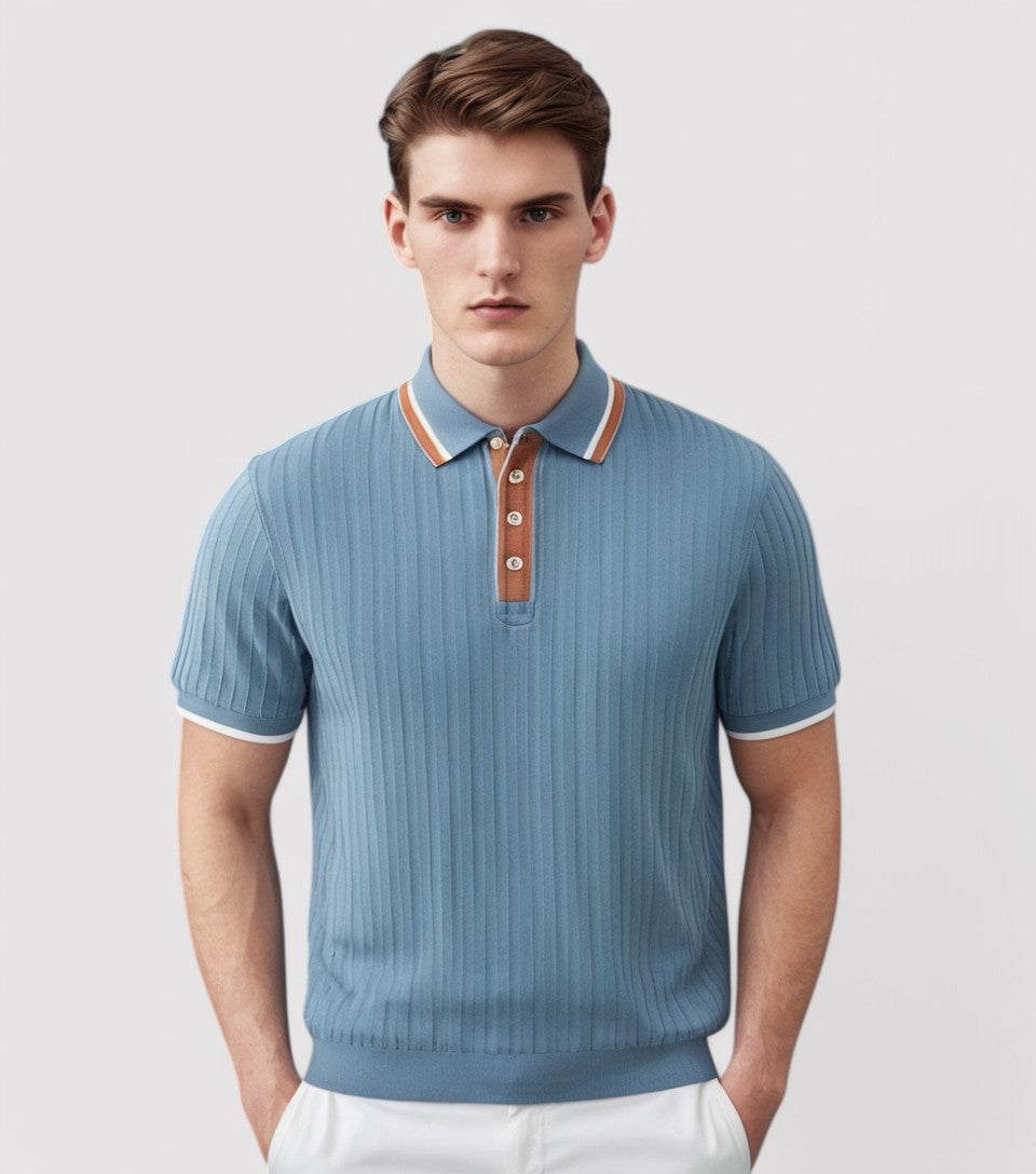 Luca – Polo moderne à Rayures fines, col Contrasté et coupe Elégante