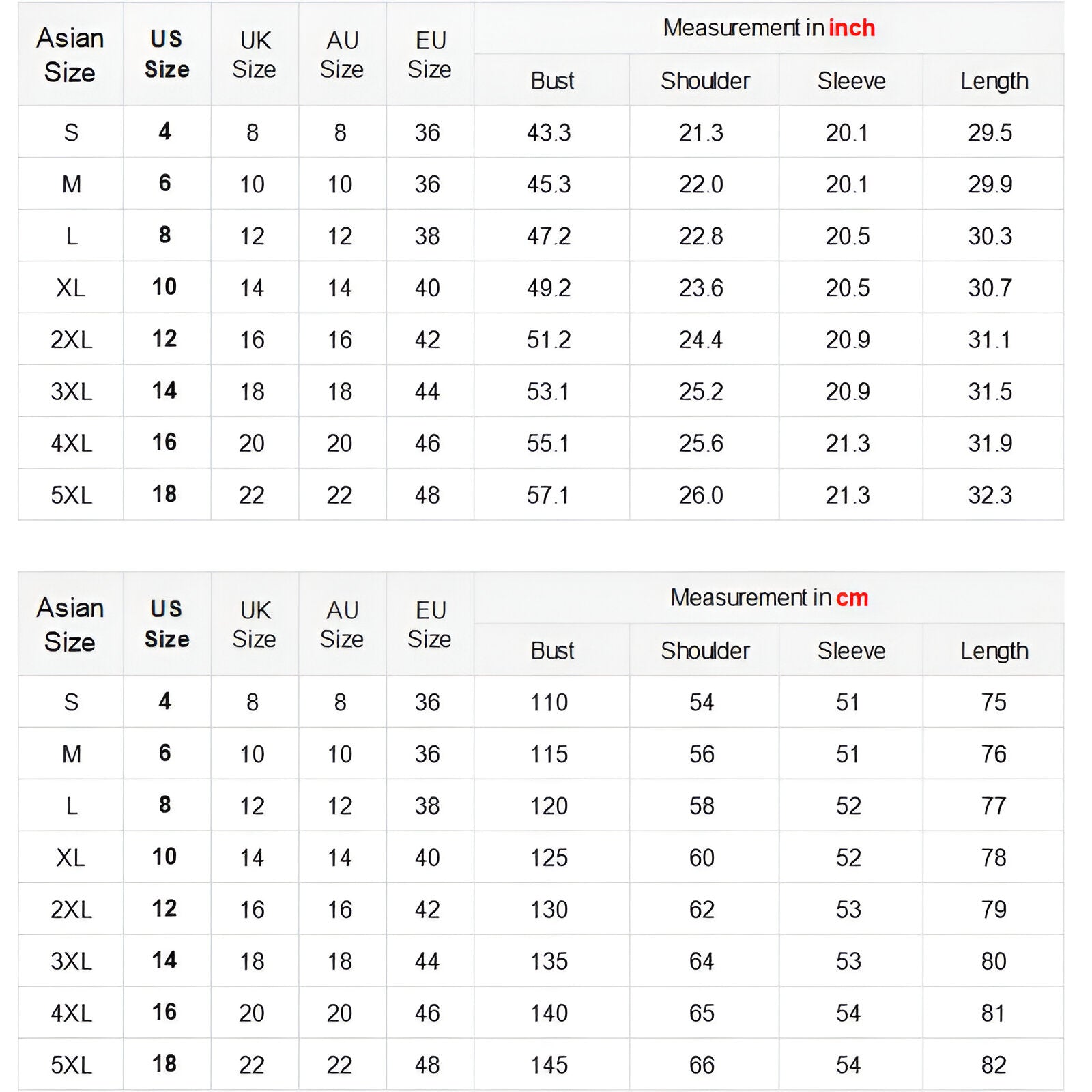 • Tailles : S-5XL